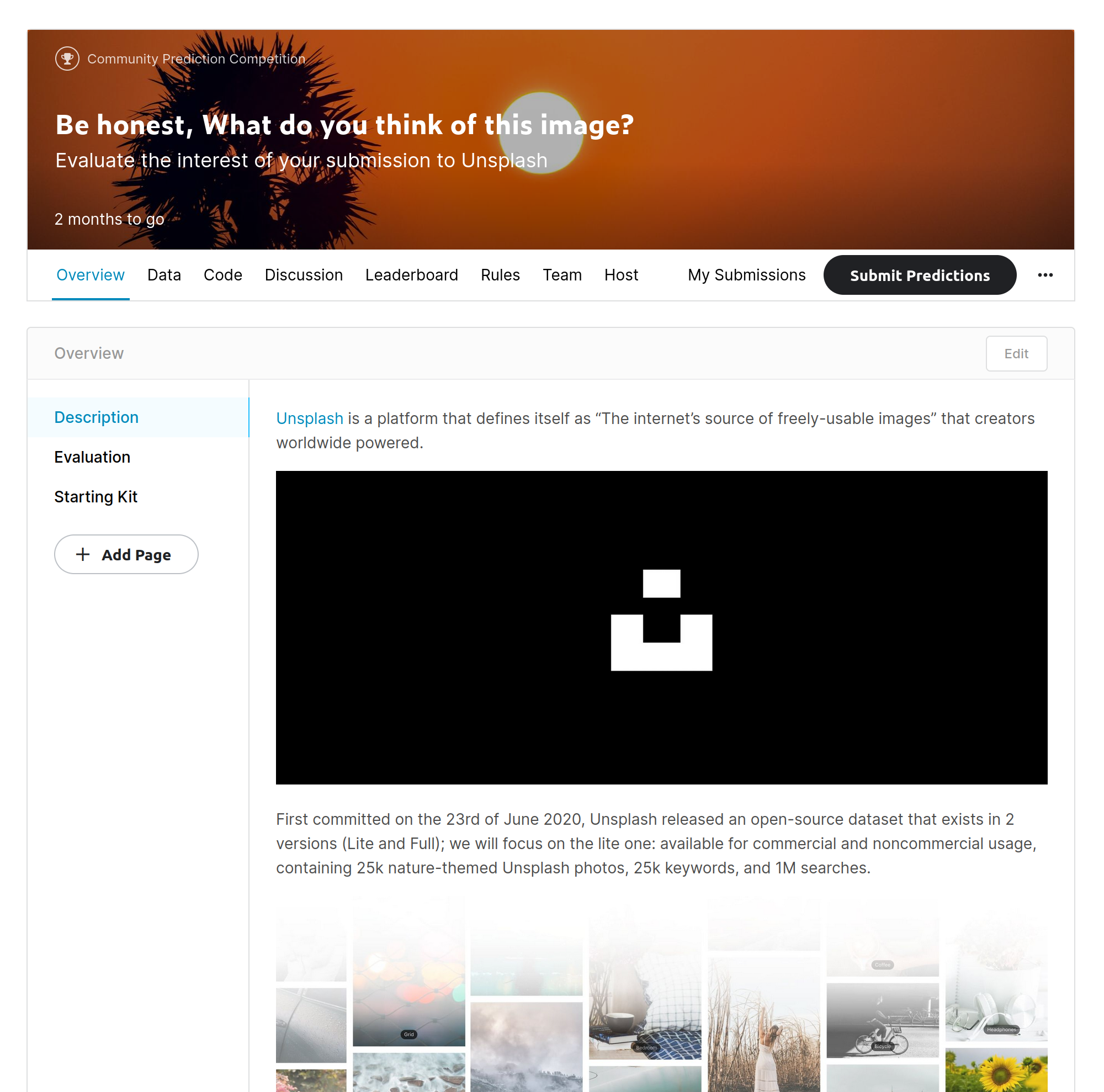 For my submission to this competition, I decided to build a community competition around images and, more precisely, predict the likability of an image only based on its visual attributes. This idea is not coming from anywhere but from a previous competition hosted by Petfinder.my on Kaggle; the competition’s goal was to predict the likability of a pet’s image based on the image and extra information (manually curated).
