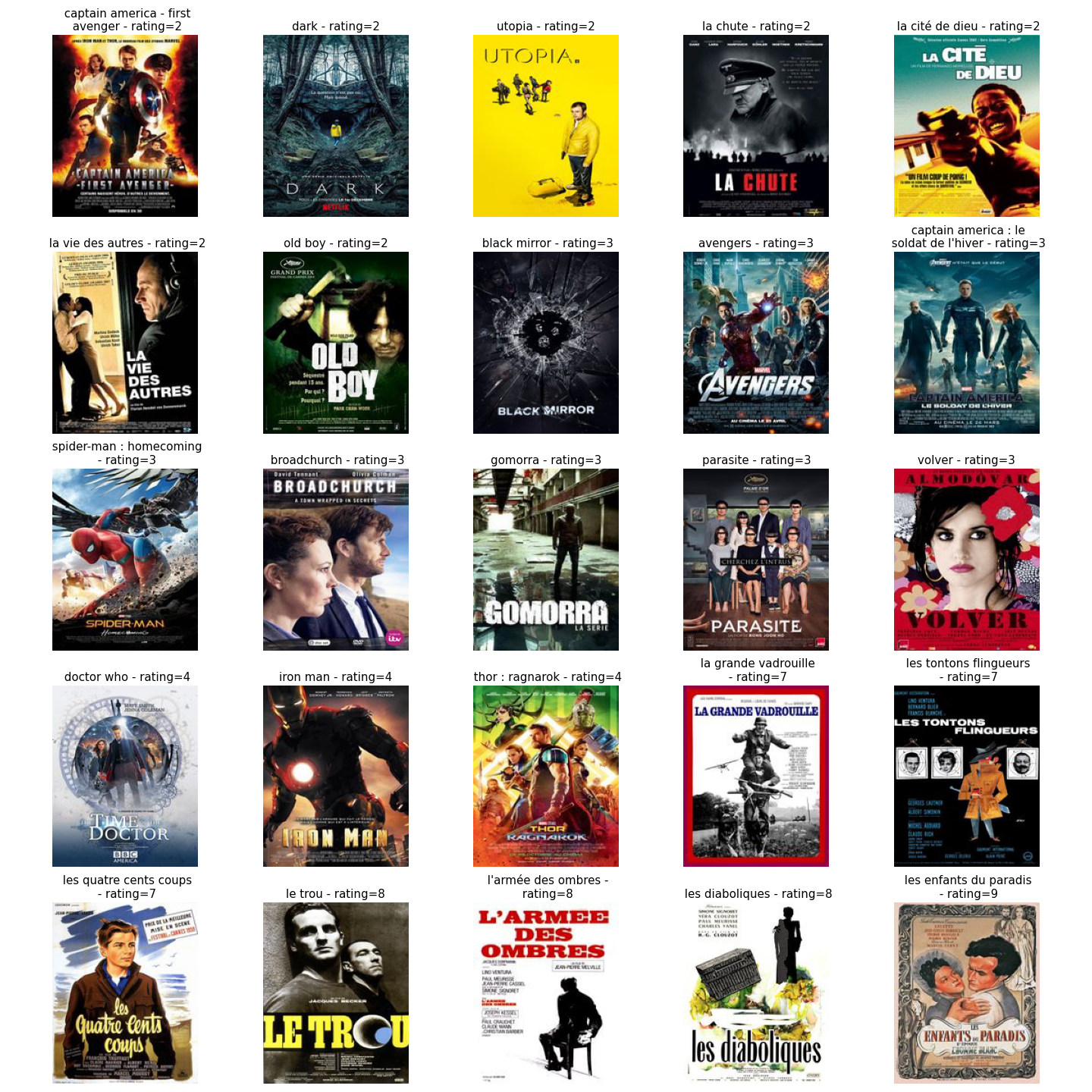 - French connoisseur: Utilisateur qui aime les vieux films français, mais pas les autres types de films (essayé de prendre des films du MCU et des films populaires non français)