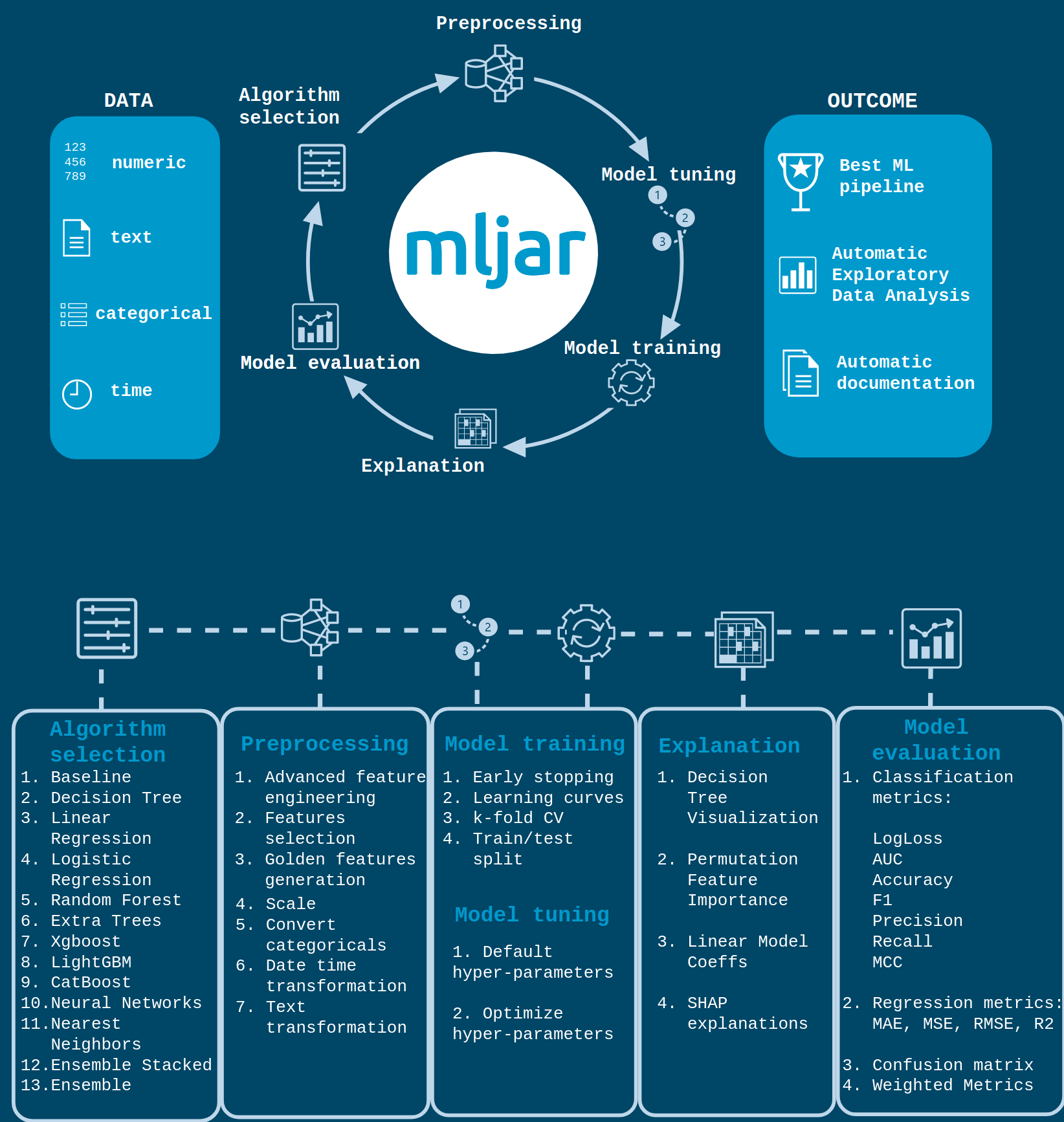 Still, it’s to let an ML library doing some research and test on a dataset to build models, there is plenty of libraries to do this (H20 automl, auto-sklearn, autokeras) but the one that I want to highlight is MLJAR autoML.