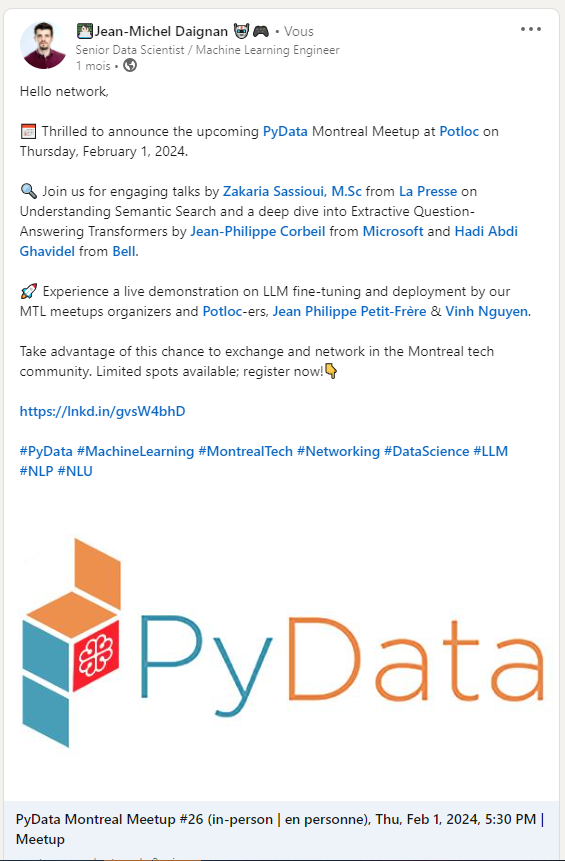 - Event hosted at Coveo, Moov.ai, Sama, Ubisoft MTL, Google, CRIM, Le wagon, Potloc