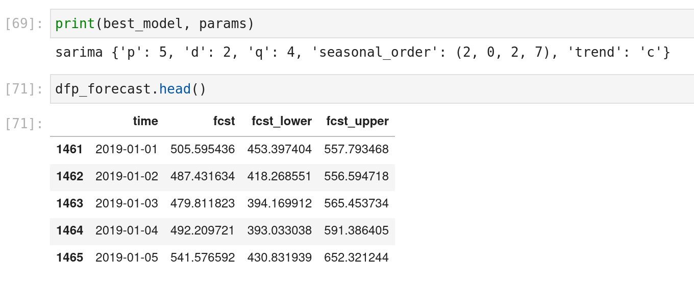 - Certains modèles prévoient différents types de sorties (prédiction avec une borne basse et haute, par exemple), donc vérifiez la sortie :)