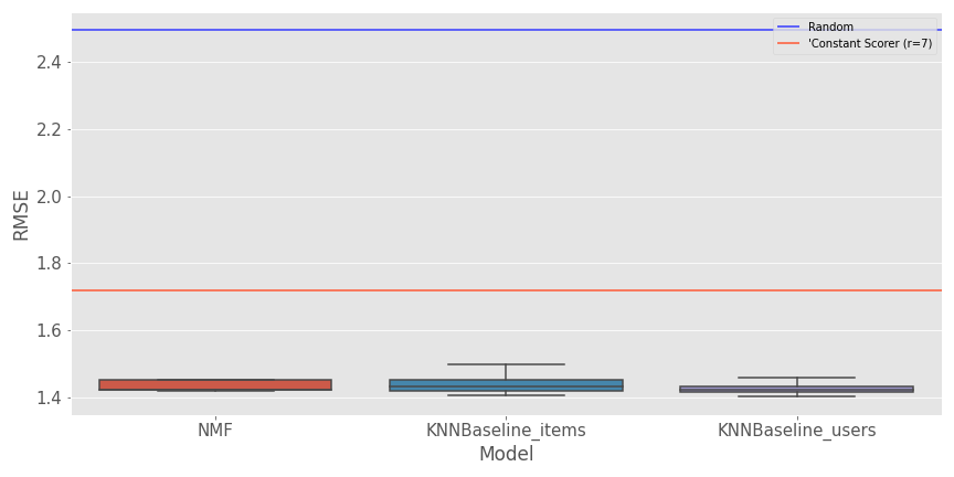 Aléatoire: Cet algorithme est assez simple et donne une prédiction aléatoire pour la note d’une paire utilisateur/article basée sur la distribution de la note dans l’ensemble d’entraînement (qui devrait être normale)