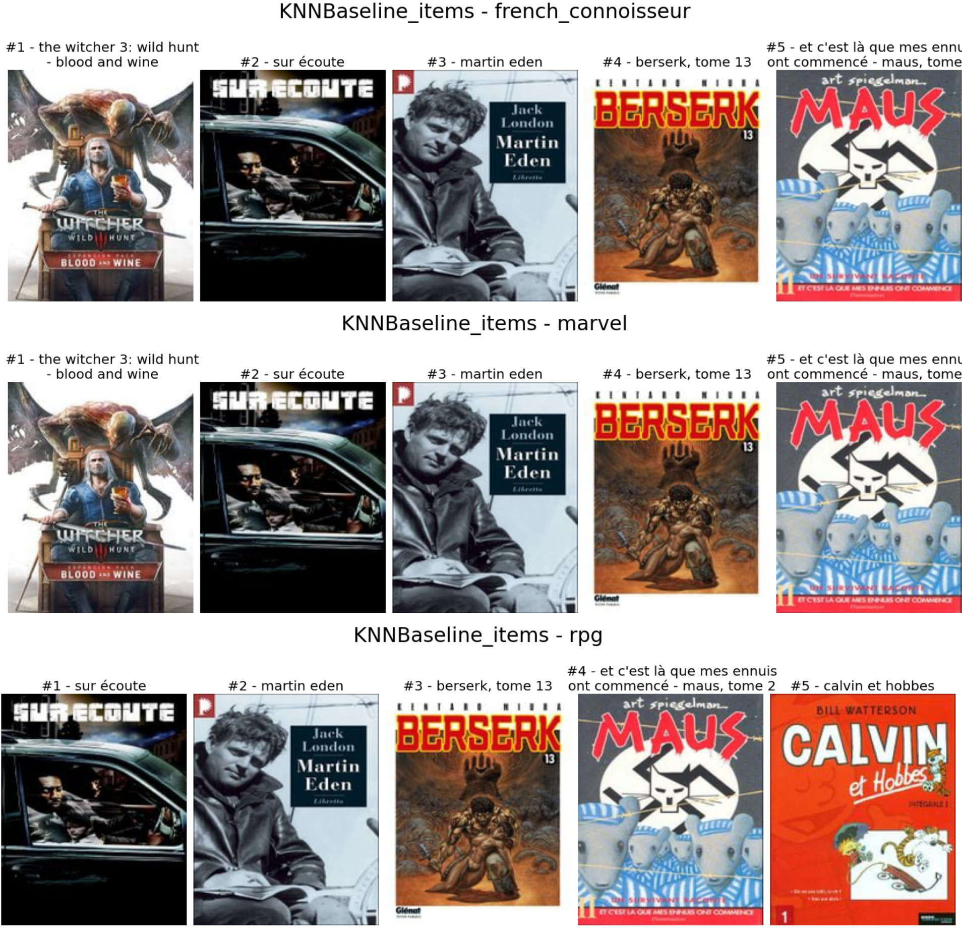 Très similaire pour chaque archétype (sauf le witcher dans l’histoire du fan RPG). Il y a des recommandations des lignes de base KNN (articles) pour les archétypes.
